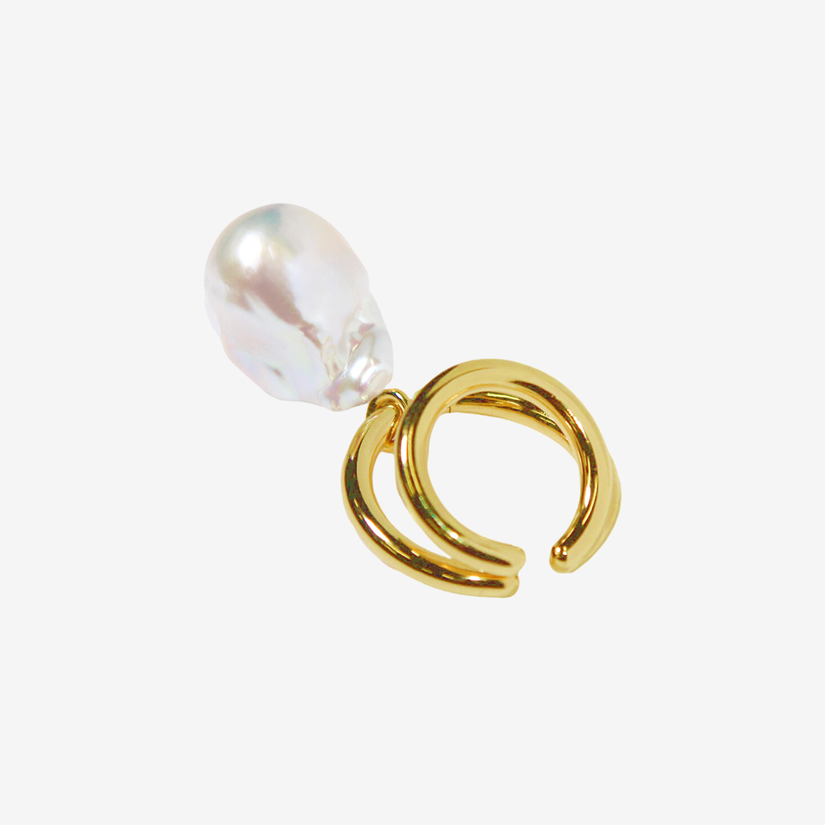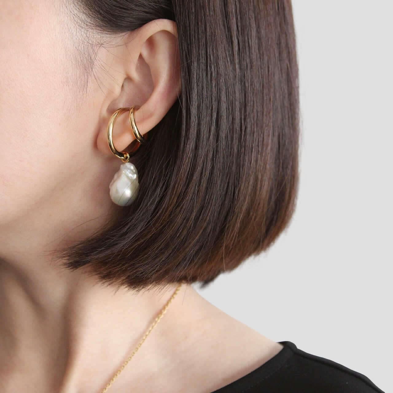 2連デザインのイヤーカフに、取り外し可能なバロックパールチャームをあしらったアイテム。チャームは簡単に着脱できる仕様で、外せばシンプルなイヤーカフとしてもご使用いただけます。
