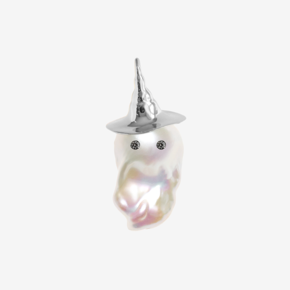 Hat Ghost Baroque Pearl Pendant Top(Silver)