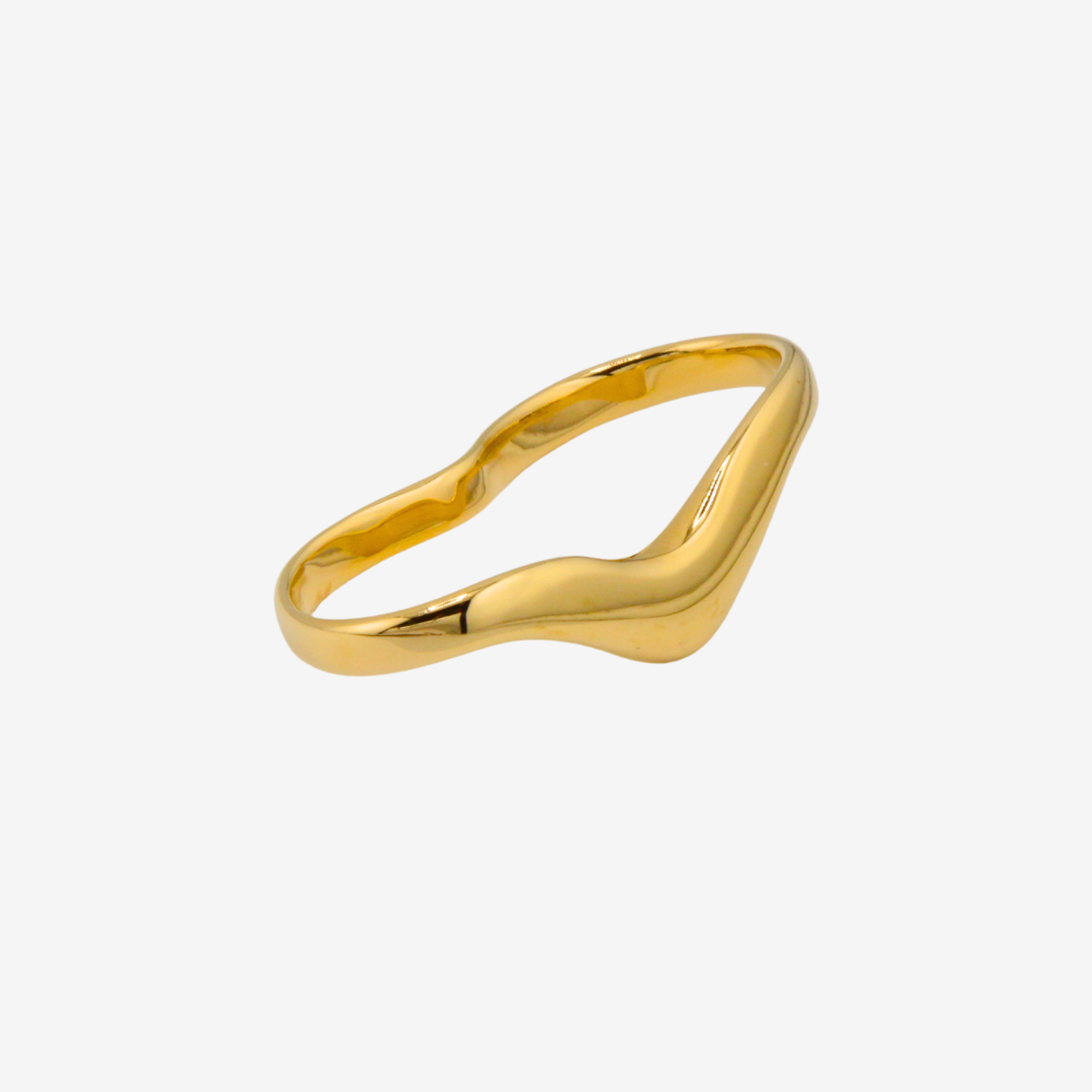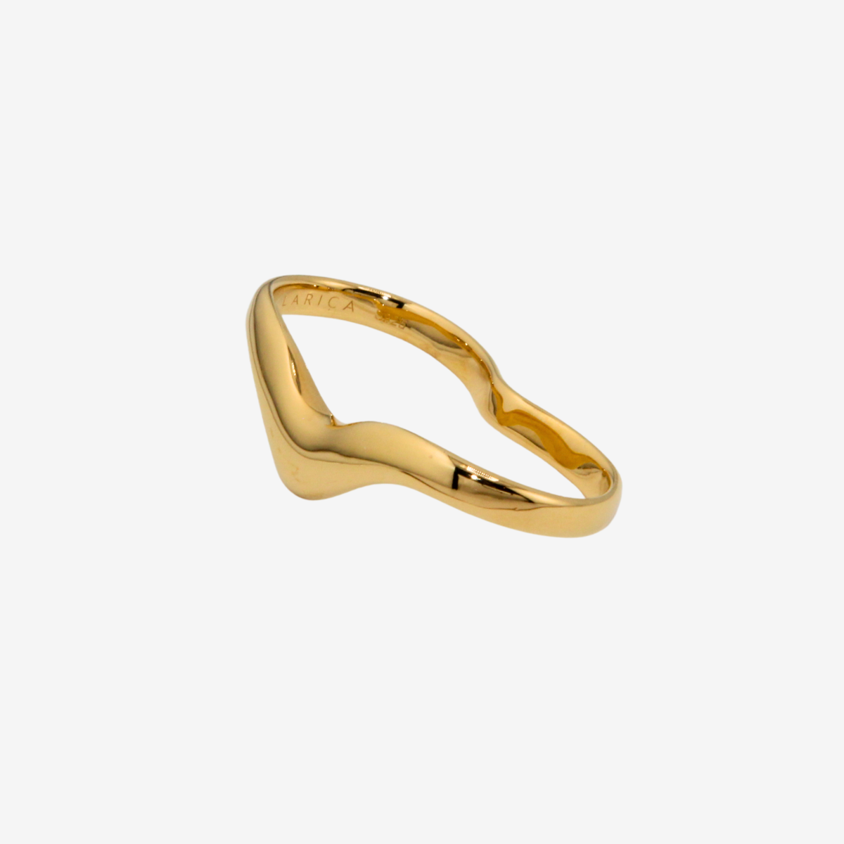 指を2本通して身に着けるデザインは、ファッション性があり、シンプルな装いにアクセントを与えます。指もしなやかに沿うカーブは、無理のないフィット感を実現。
