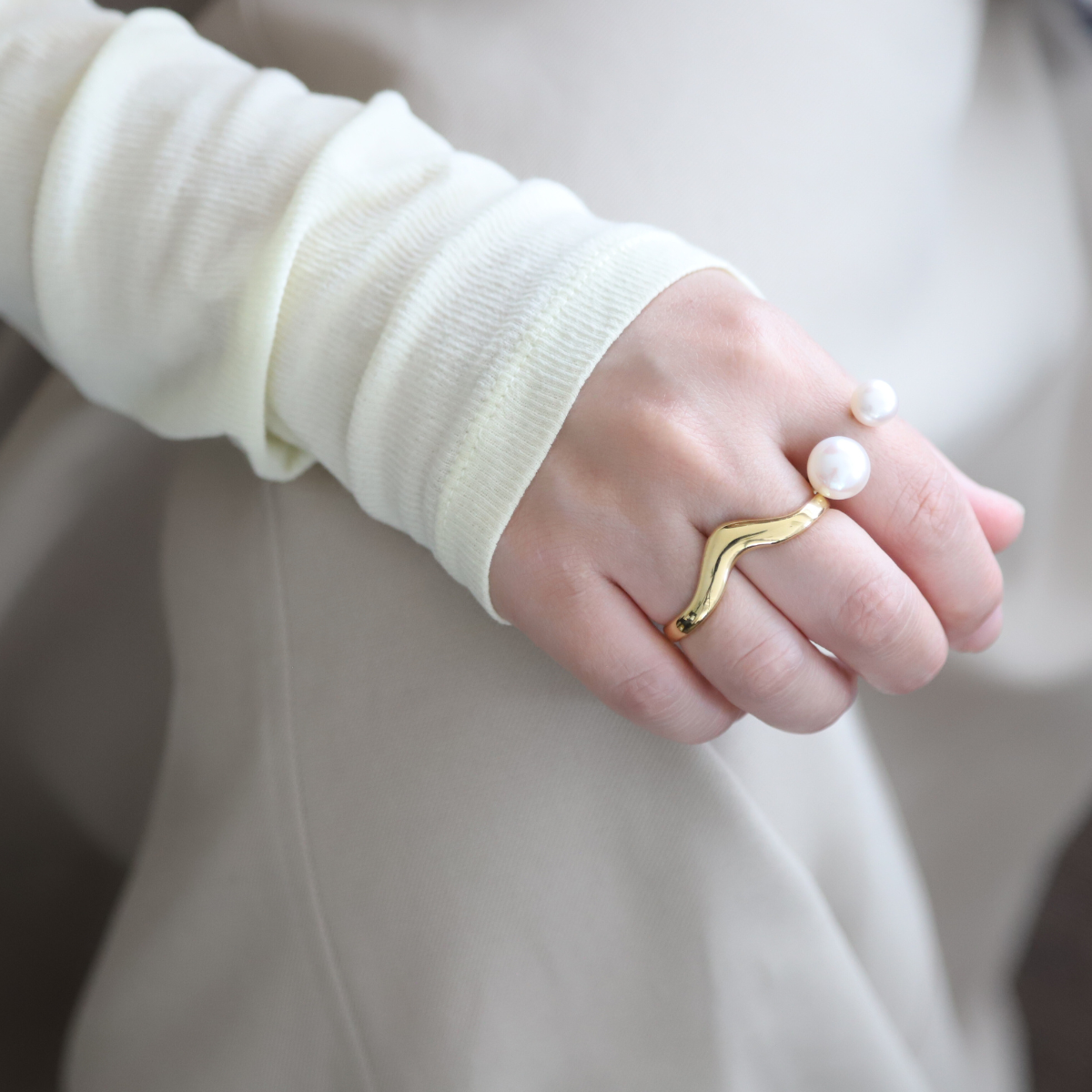 他のリングとのレイヤードも楽しめ、手元に新しいリズムを生み出します。
