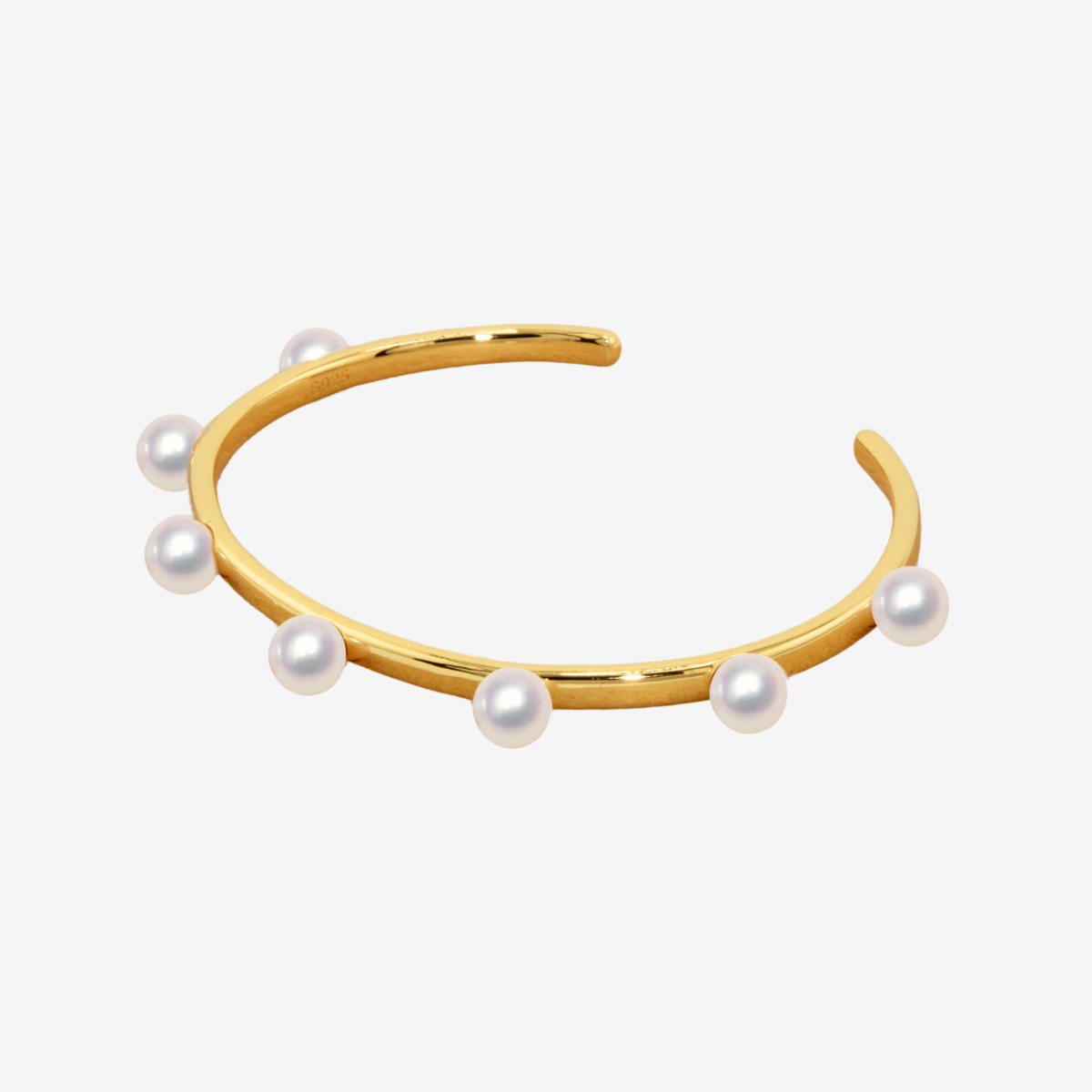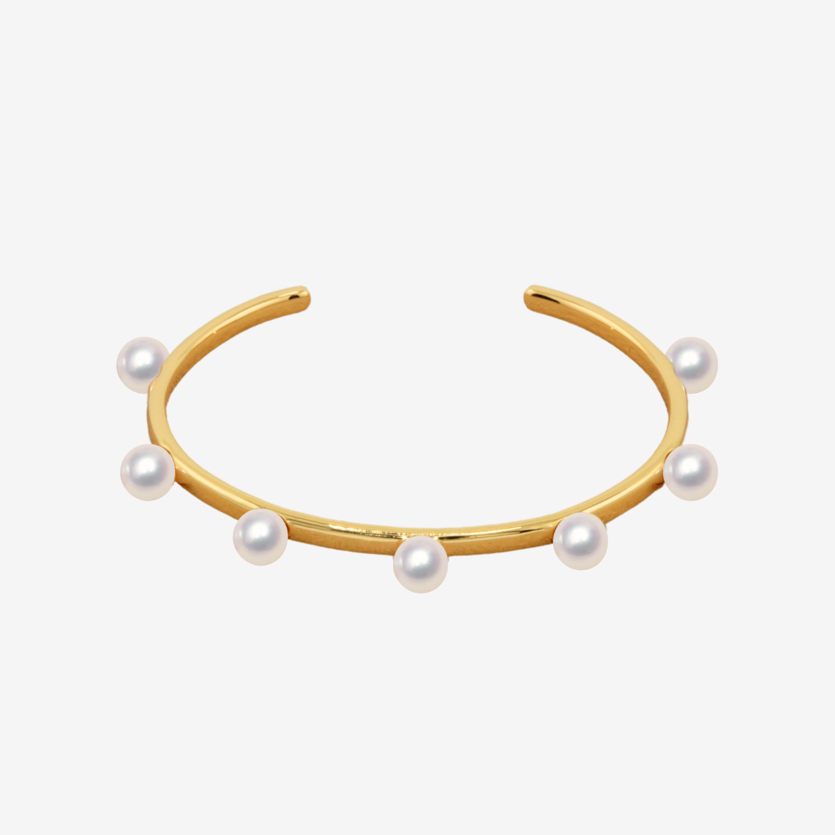 均等に配されたパールがリズムを刻む、ミニマルで洗練されたバングル。