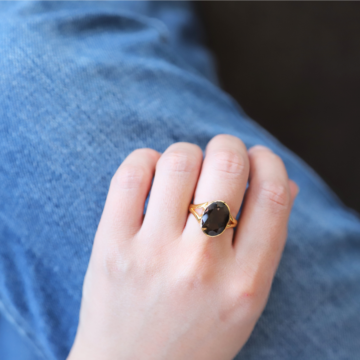 大人のエレガントを纏う、圧倒的な存在感の天然石リング。大粒のストーンが美しく輝くシンプルながらも華やかなデザインです。重厚感のあるリングが石の美しさを更に引き立て、指先に上質な輝きをプラスします。