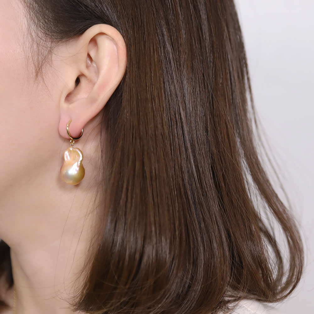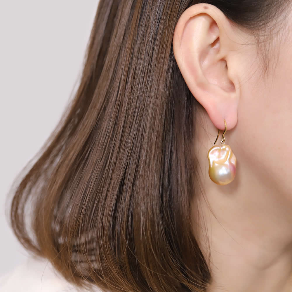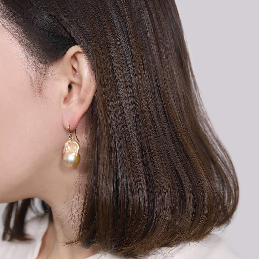 しなやかに揺れる上質なバロックパールが、優雅な輝きを放つドロップピアス/イヤリング。自然が生み出した有機的なフォルムと奥行きある色彩が、動くたびに光を捉え、耳元に上品な存在感をもたらします。