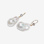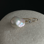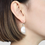 透明感のあるホワイトトパーズをあしらった、バロックパールのドロップピアス。