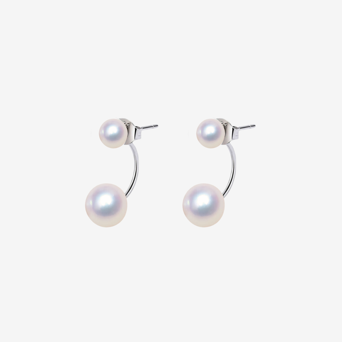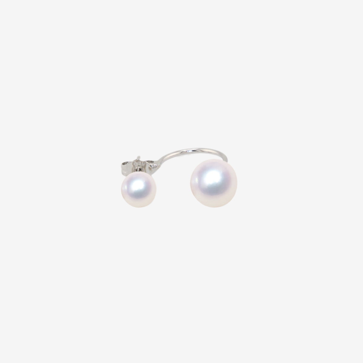 サイズ違いの淡水パール組み合わせたパールピアス。キャッチ部分を取り外して