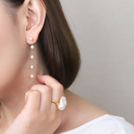 繊細に揺れる小粒のパールが、可憐で上品な印象を添えるチェーンピアス。耳元で光を受けてきらめくたびに、横顔を美しく引き立てます。チェーンを取り外して、一粒パールピアスとしても楽しめる2way仕様。