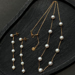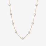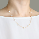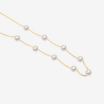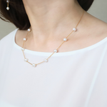 等間隔に配置されたパールが、軽やかに首元を彩るステーションネックレス。フリーアジャスター仕様で、お好みの長さに調整が可能です。