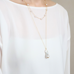 絶妙な“抜け感”を演出し、シンプルながらも洗練された印象に。一連でも、他のネックレスと重ね付けをしても、美しく調和する万能ネックレスです。