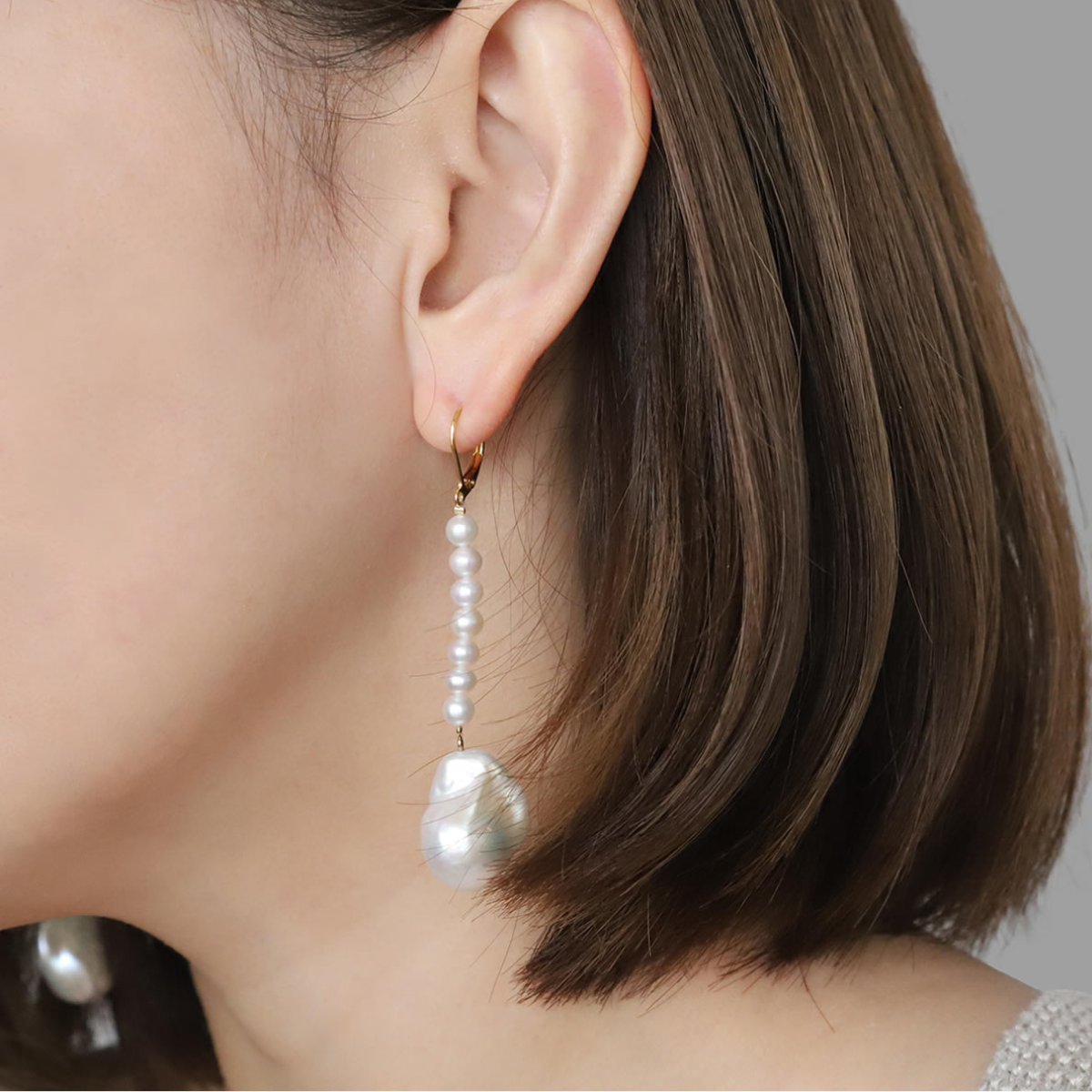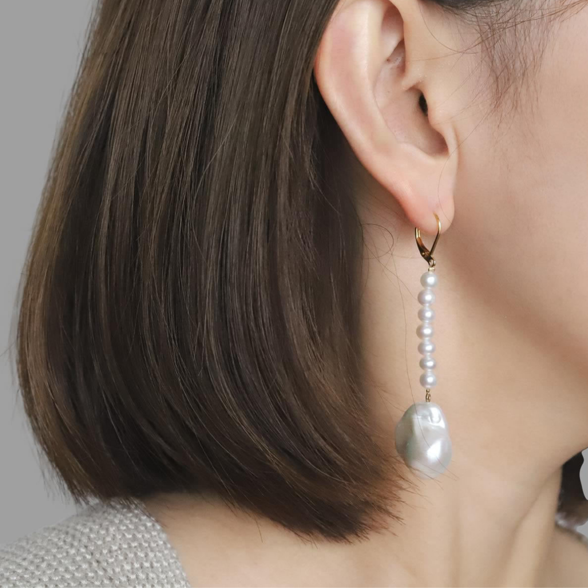 上質な小粒パールとバロックパールを組み合わせた、上品で個性あふれるロングピアス。