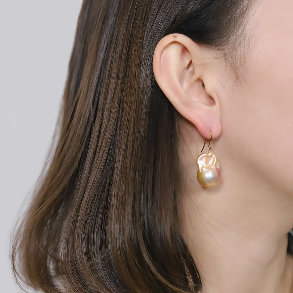 しなやかに揺れる上質なバロックパールが、優雅な輝きを放つドロップピアス/イヤリング。自然が生み出した有機的なフォルムと奥行きある色彩が、動くたびに光を捉え、耳元に上品な存在感をもたらします。