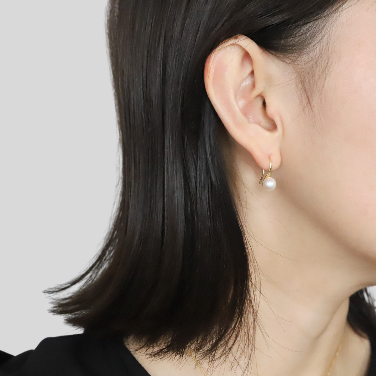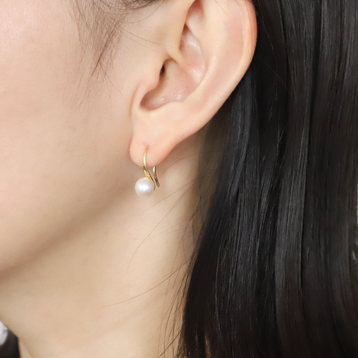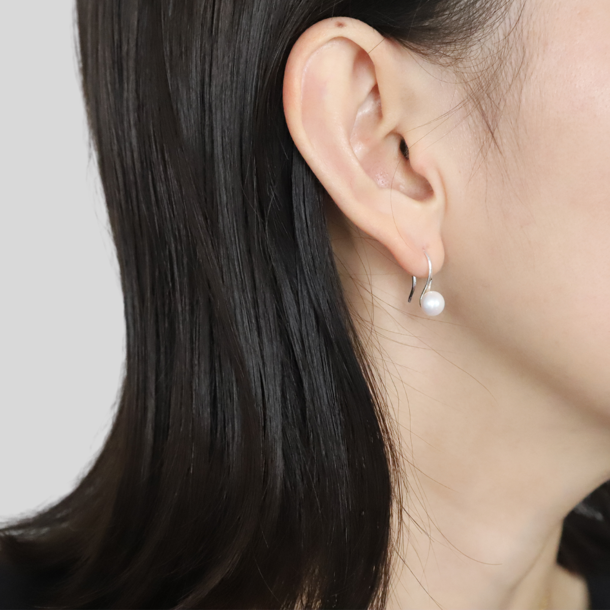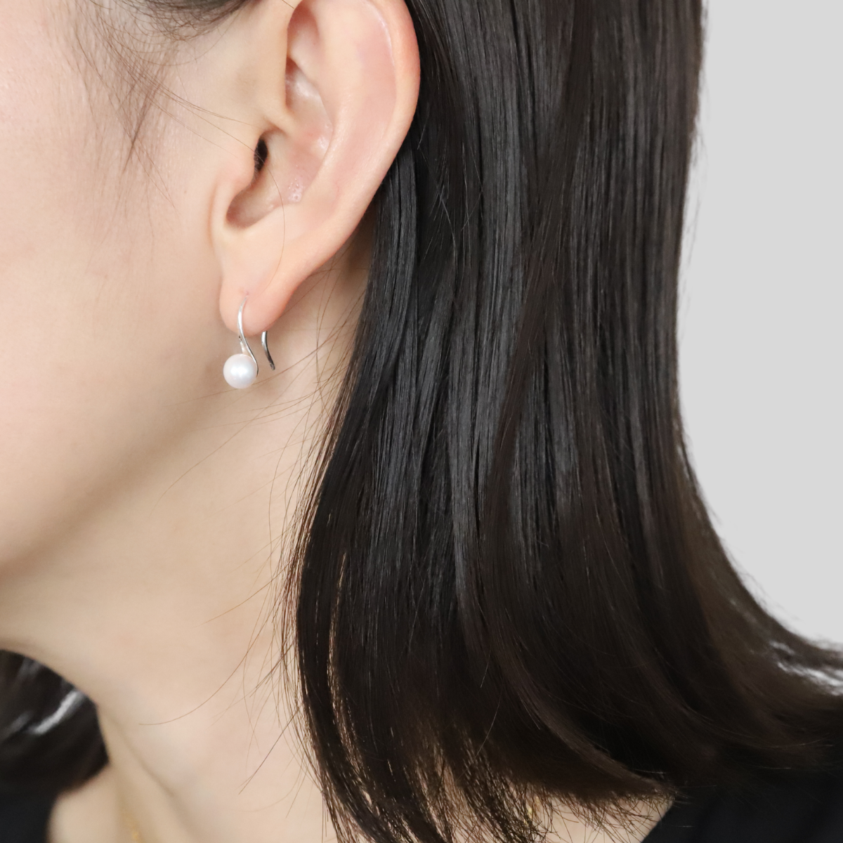 耳たぶにコロンと垂れ下がる一粒パールのベーシックなピアス。キャッチがないので着脱が簡単!お出かけ前にさっとつけやすいフックタイプ。