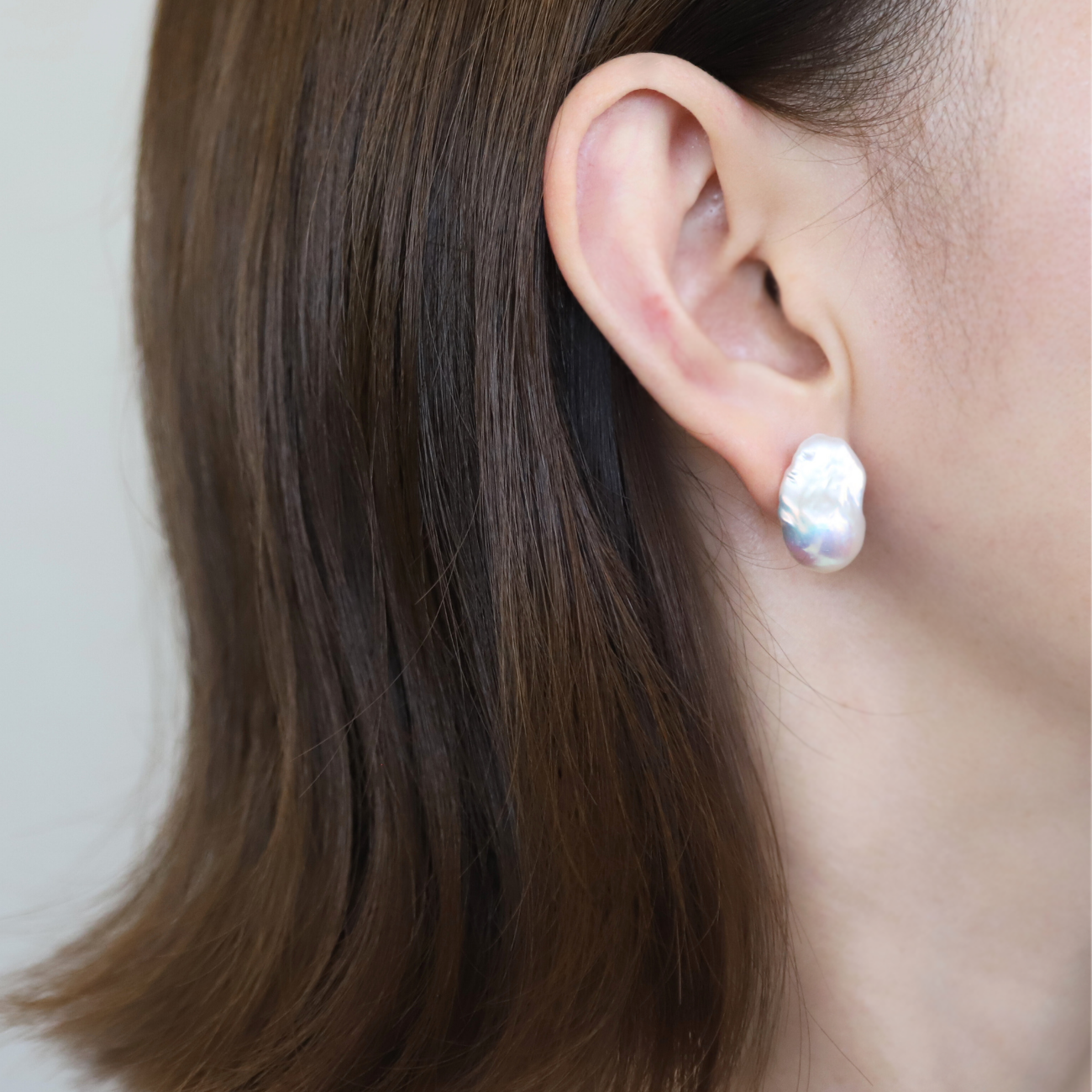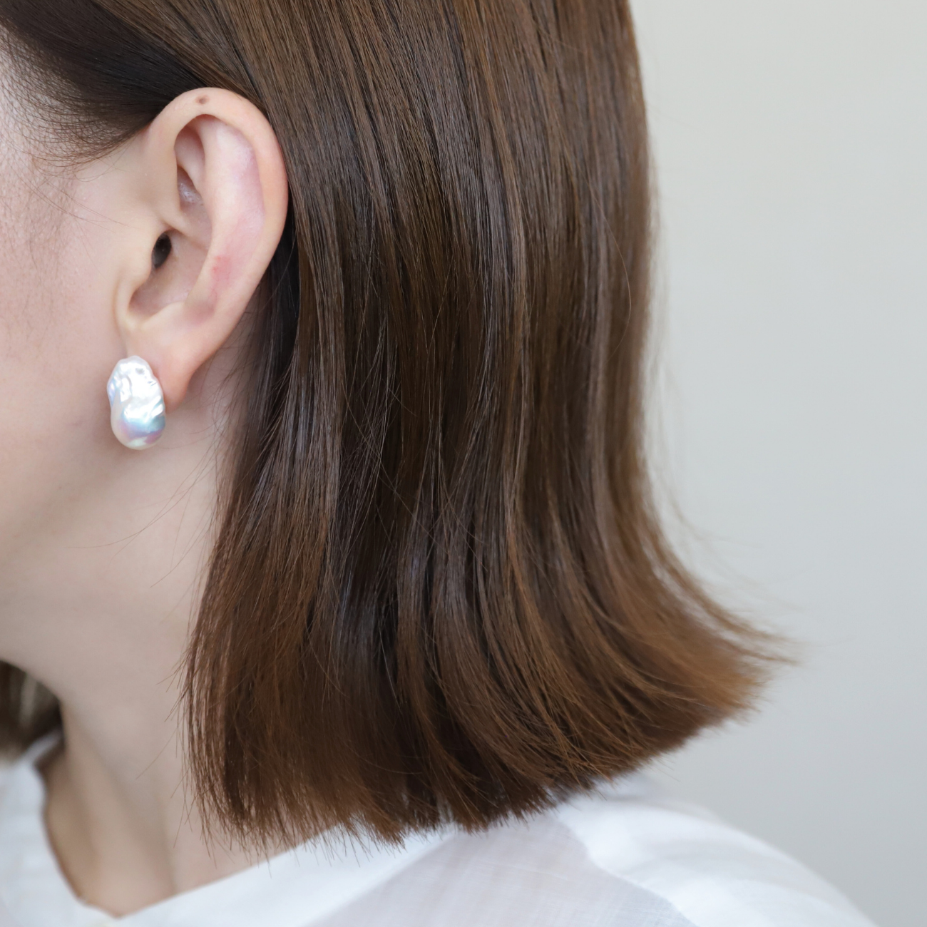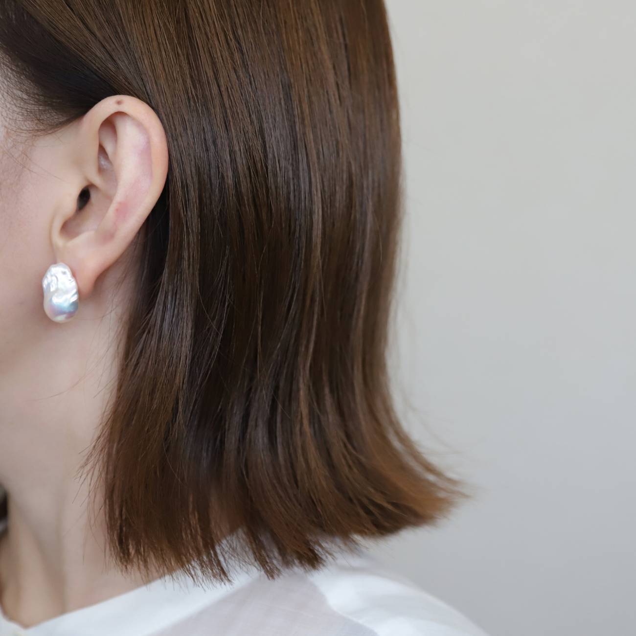 ピアス・イヤリングには、LARICAの通常サイズよりも一回り小さい ミニサイズのバロックパール を使用。日常使いにぴったりな、さりげなく上品なサイズ感が魅力です。