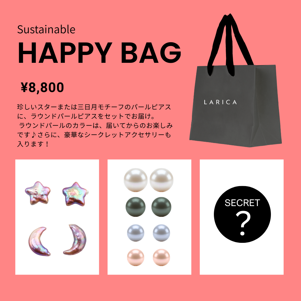 こちらのHAPPY BAGで使用しているパールは、表面に小さなダメージや個体差のあるパールを使用しております。その特性をご理解の上、ご購入ください